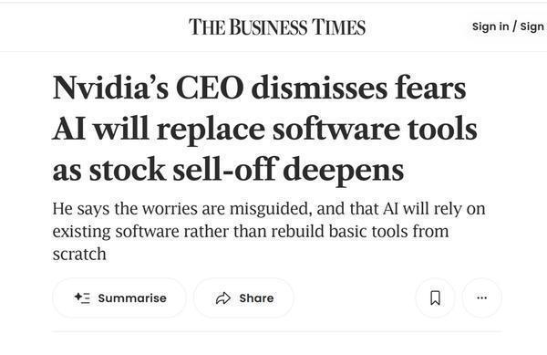 对于AI公司Anthropic推出新版聊天机器人,市场担忧AI能力的快速提升可能对数据行业和专业服务领域造成冲击,引发全球软件股出现明显抛售,相关情绪持续蔓延。对此,黄仁勋强调,认为AI会让软件公司失去存在意义是一种误解。他指出,AI未来的发展离不开既有的软件生态,而非从零再造基础工具。“无论是人类还是机器人,面对‘直接使用现有工具’与‘重新发明工具’的选择,答案显然是前者。”黄仁勋进一步解释,当前AI的最新突破集中在“工具使用”领域,核心原因正是现有软件工具的设计具备清晰明确的特性,为AI应用提供了坚实支撑。(纯钧)举报/反馈